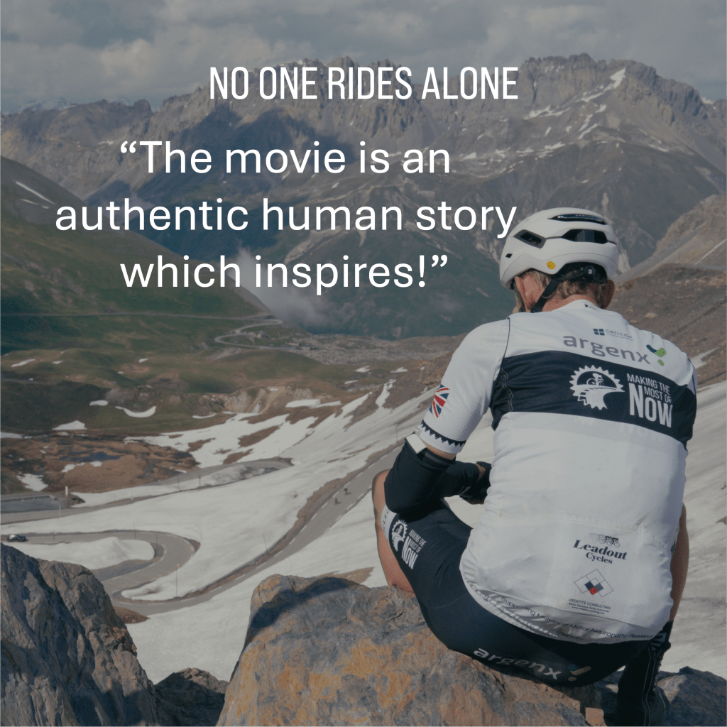 Brought to you by Making the Most of Now and the team at Silvereye films behind the award winning film “One Day Ahead”. No One Rides Alone, follows the team as they ride around France, connecting with others in the rare disease community and learning more about MMN and the impacts it and other conditions like it. have